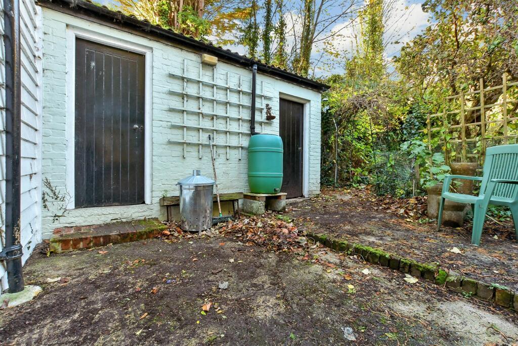 Outside, the Rear Garden is fully enclosed by a brick garden wall along the road frontage and comprises a concrete yard area with a bordered path leading to the Garage at the northern extent of the property. There is a principal parking area, with space for 2 vehicles.