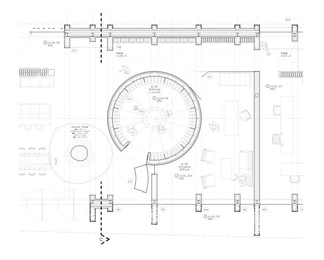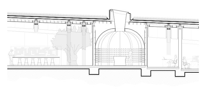 The entire project has justified every element of the building and landscape in order to fully function as an off-grid viticultural warehouse and winery with additional retail space storage rooms and offices. The “Sky Meadow” will sit atop the entire main building which will provide not only a natural habitat for wildlife but also to allow for the collection of rainwater which will be stored in a lower pond. The natural roof meadow will function as a natural heating-cooling system for the building throughout the year too, providing insultation throughout the winter months as well as a cooling moisture mechanism in the warmer summer months.