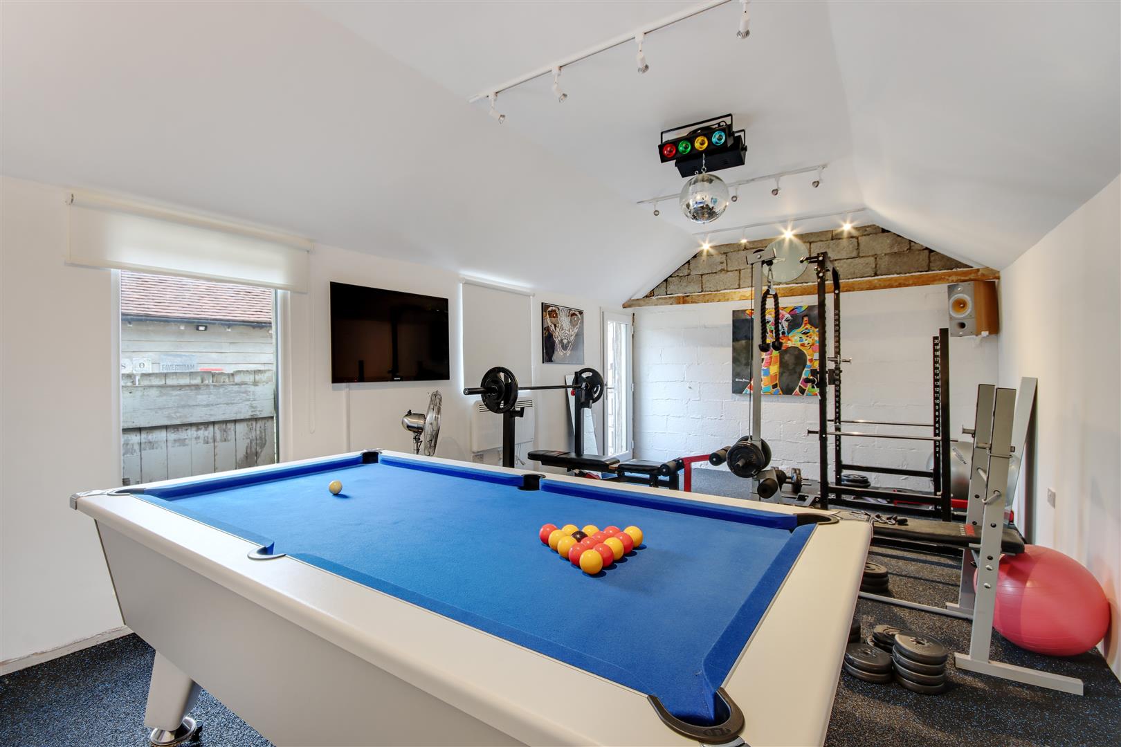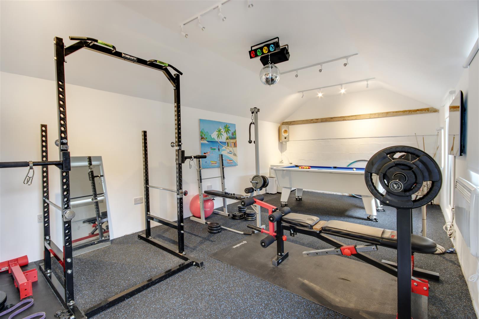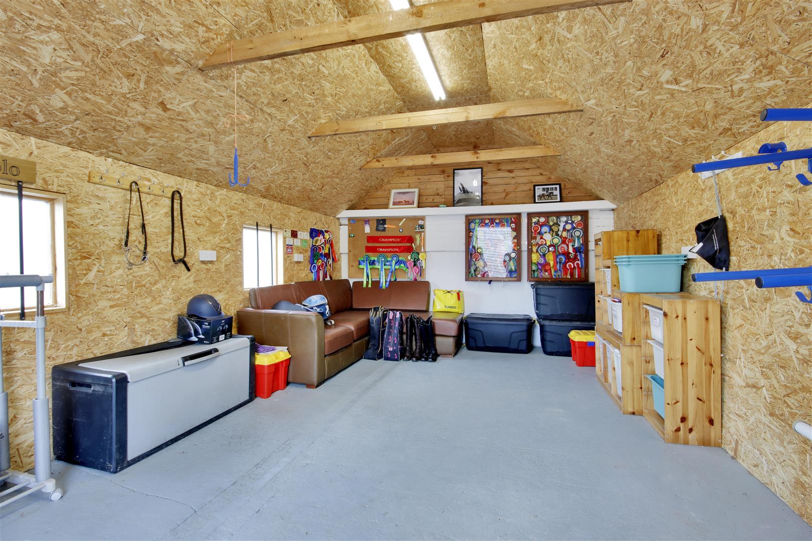 Finally, as part of the equestrian facilities, there is a detached insulated Timber Framed Building split into three useful areas including, Secure Tack Room which is alarmed and has heating and insulation, Utility Room and Gym.