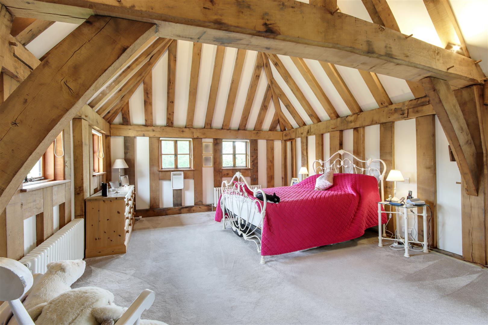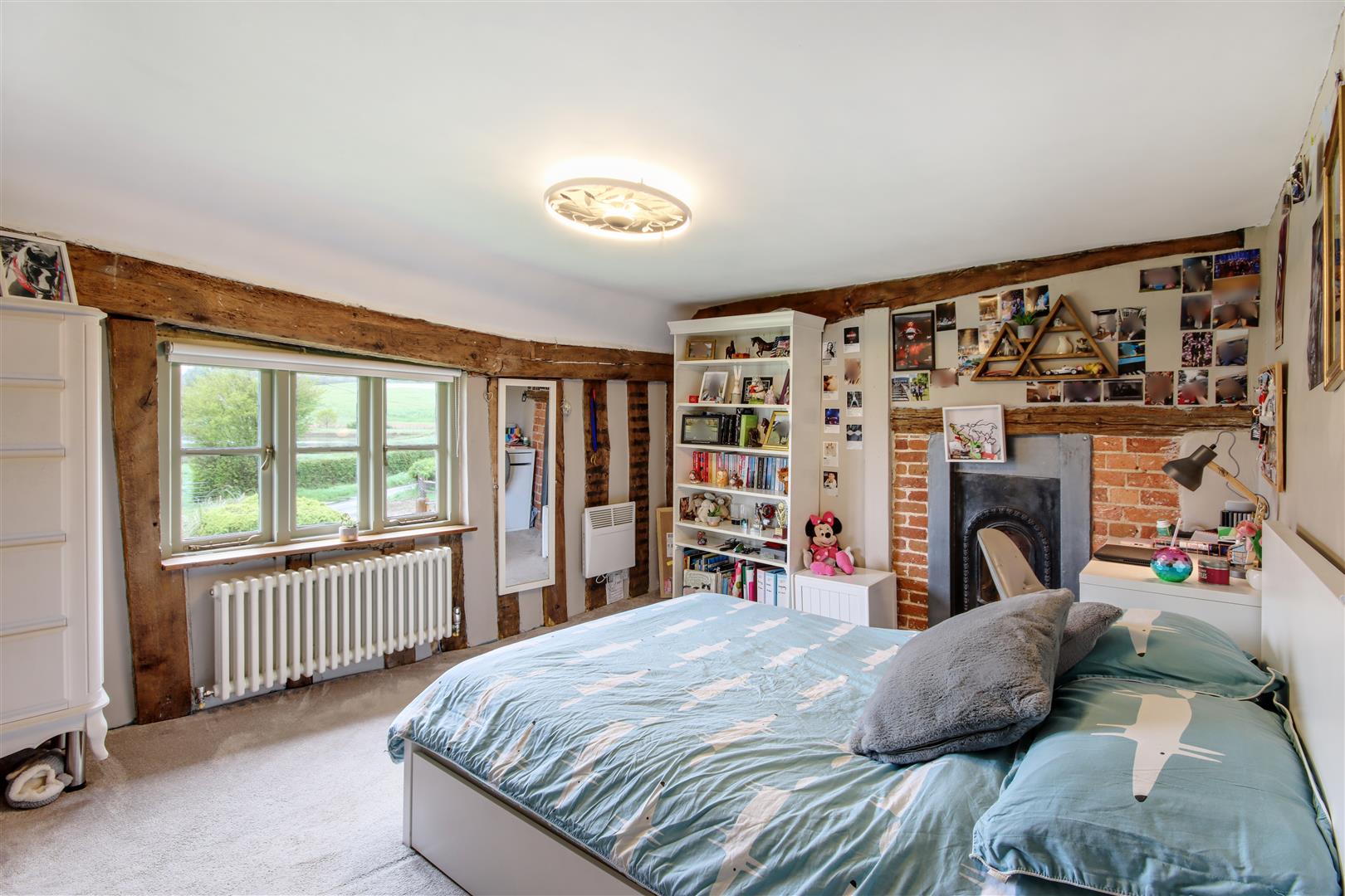 Hecton Farm was comprehensively restored from the ground up by the pre-eminent restoration specialist Anthony Hicks, in collaboration with English Heritage in 2003. The current owners have since fully renovated, refurbished, modernised and extended the property. The Grade II Listed main residence is now a beautifully presented 5 bedroom family home in an idyllic location. The character and charm remain but with the benefit of comfortable, modern bathrooms and kitchen. Exampels of the original features are a King post, which we understand to date from the 1400’s, heavy oak ceiling, structural beams, inglenook fireplace with Bressumer beam, mullion windows and wide oak floorboards along with vaulted ceilings.