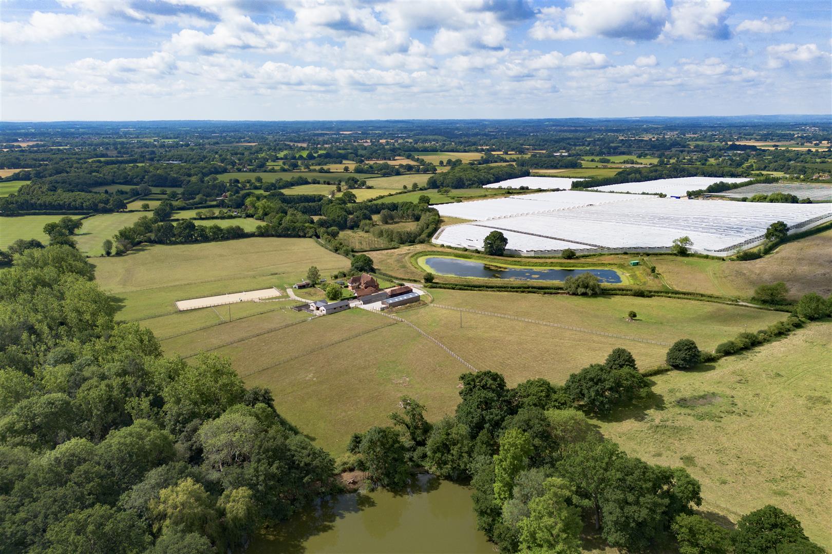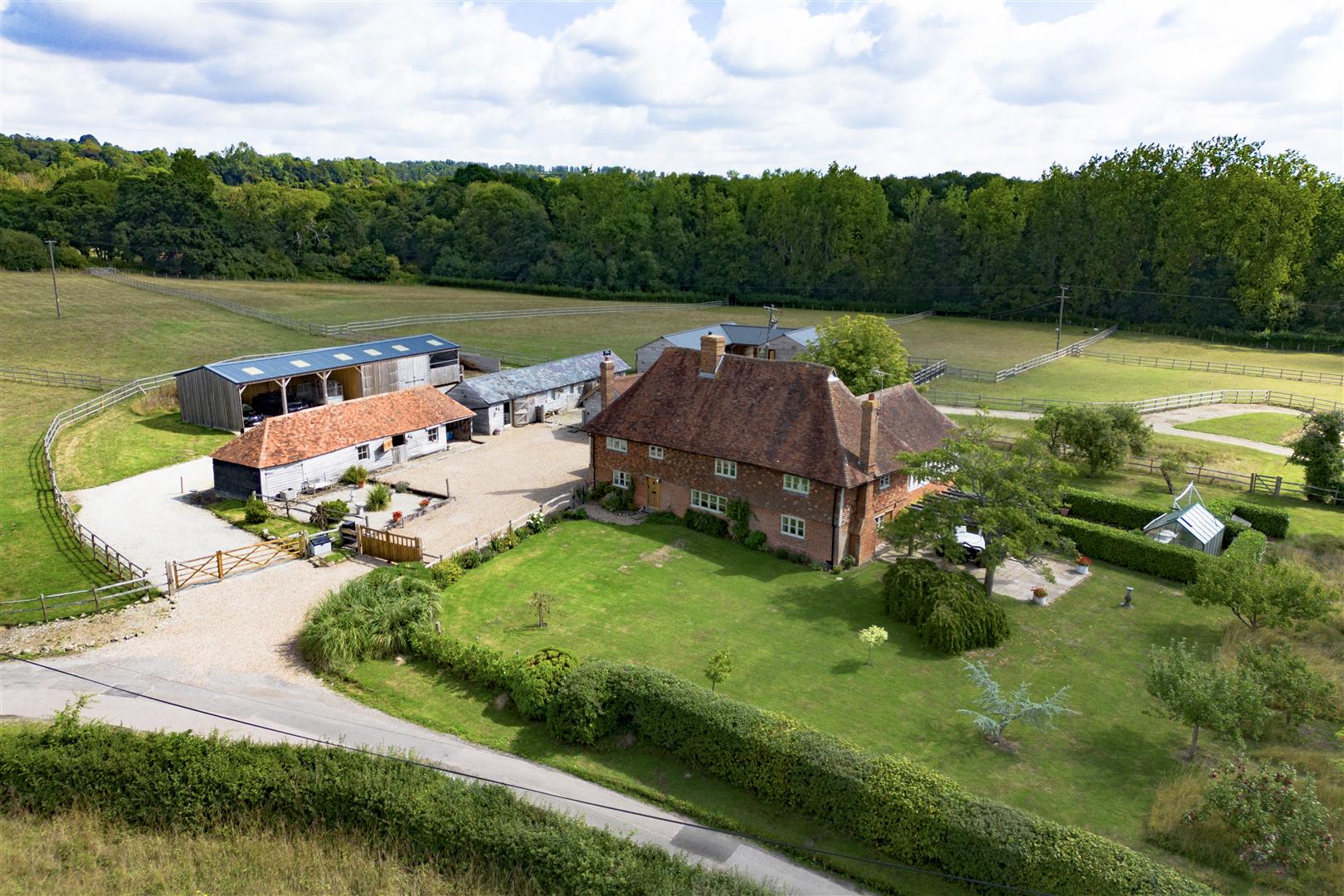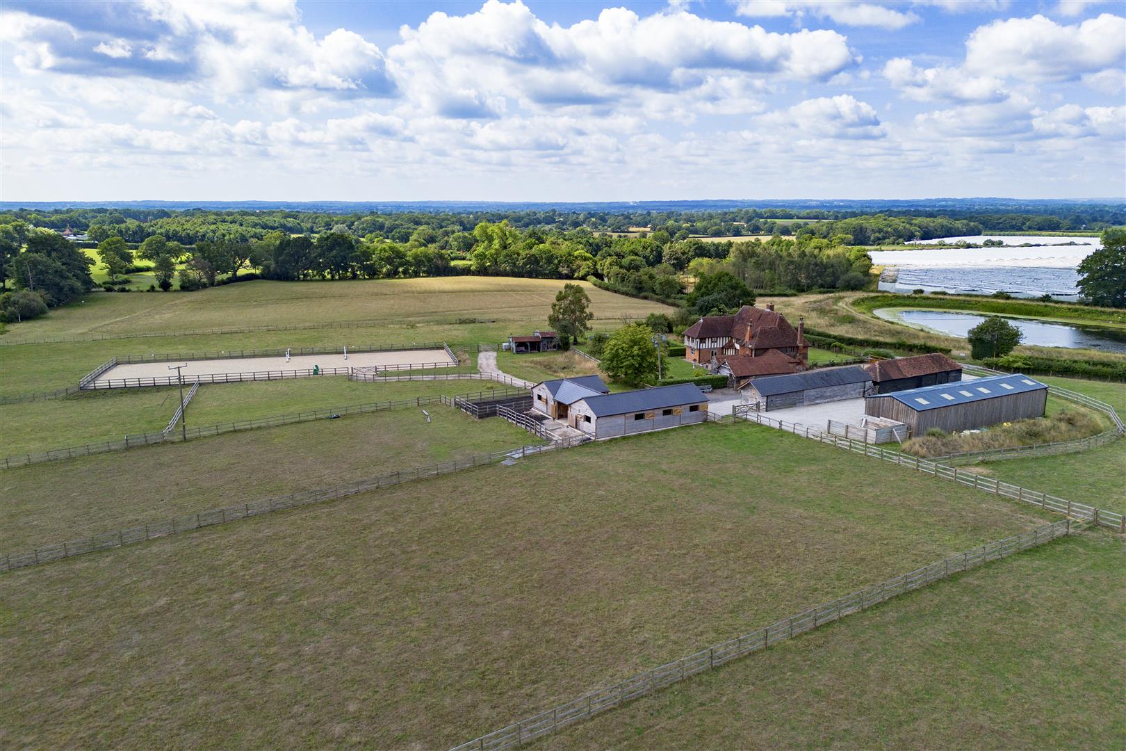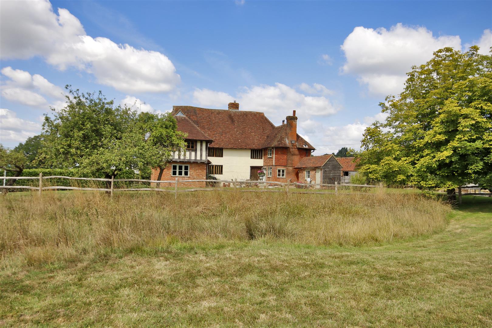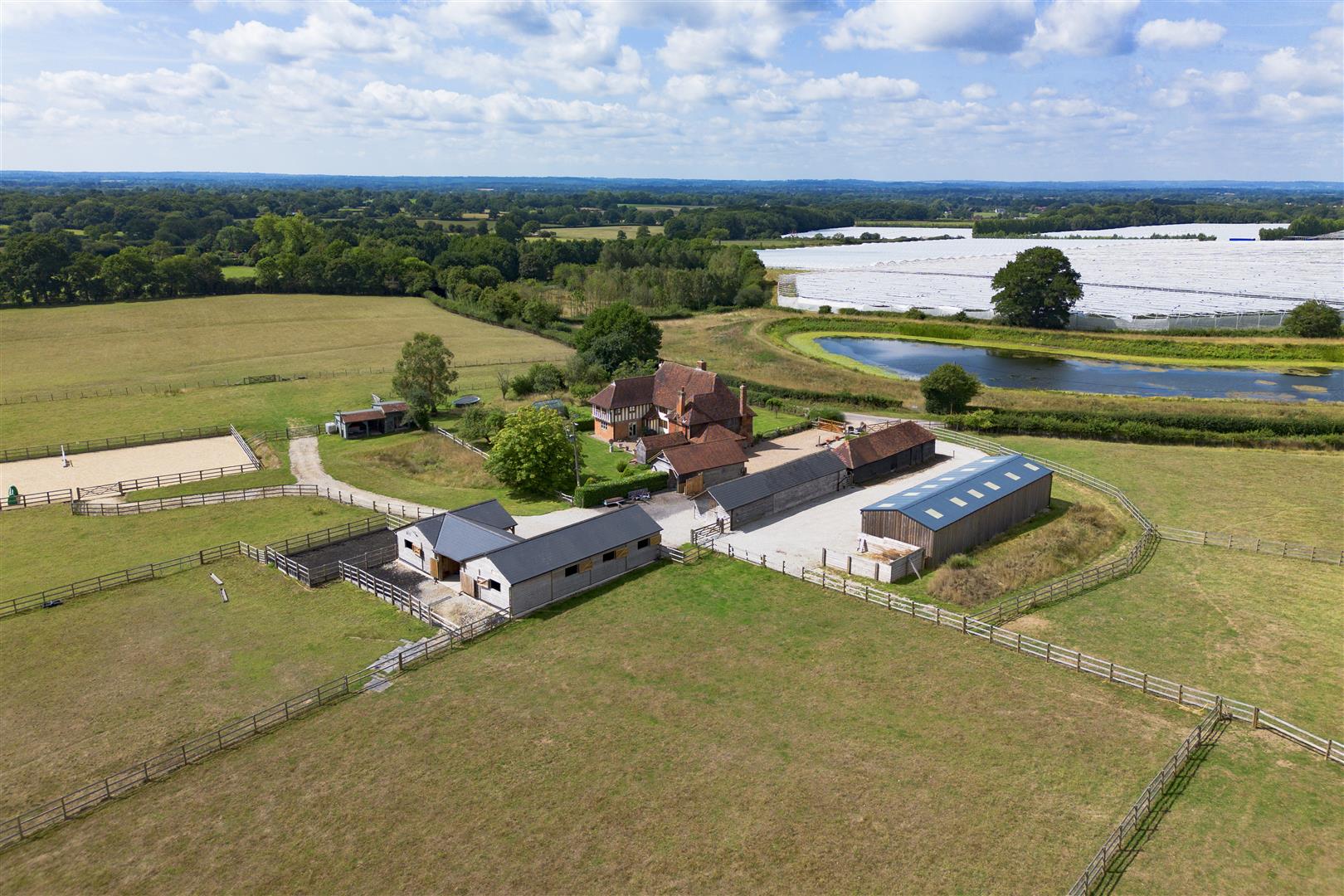 A unique & enchanting ring-fenced equestrian property situated within a hidden and secluded setting in the Weald of Kent with beautifully restored Grade II Listed medieval hall house, outbuildings & land. In all approximately 19.58 acres.DESCRIPTION