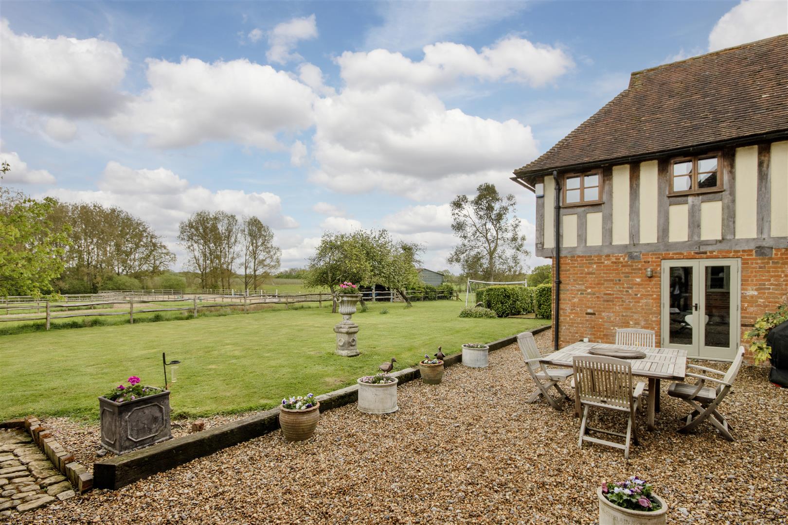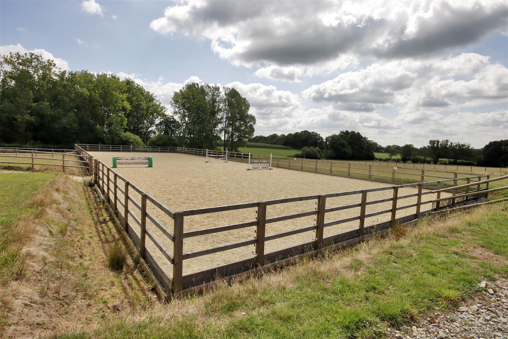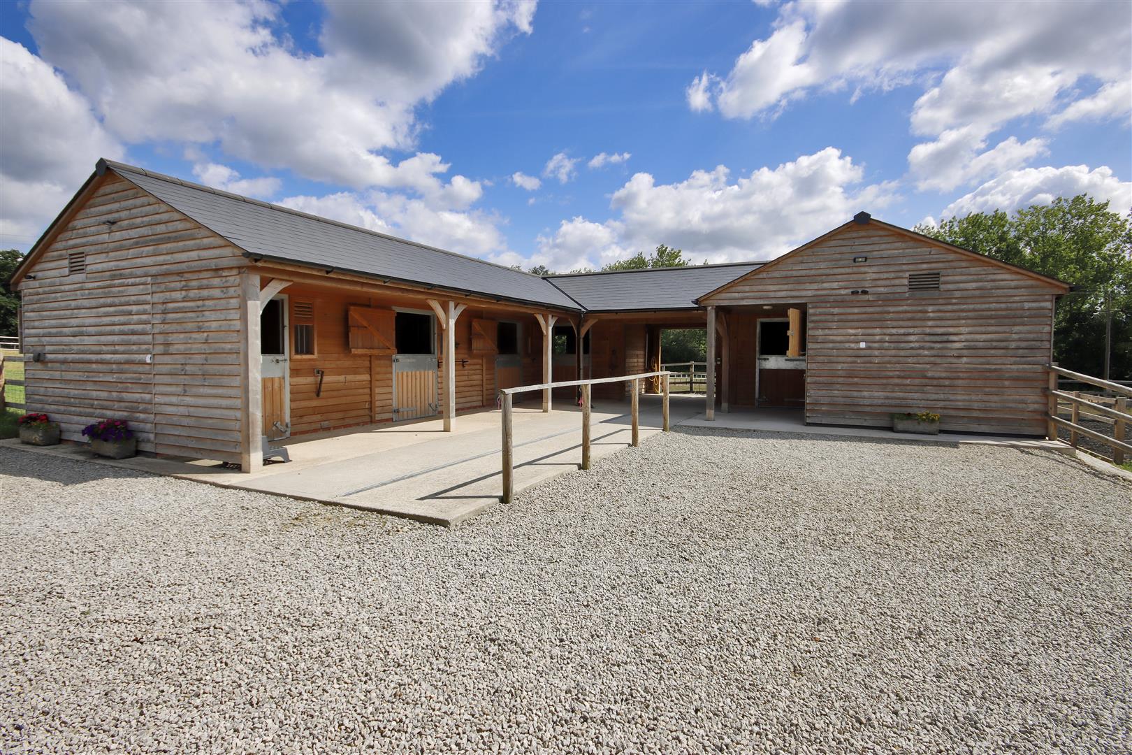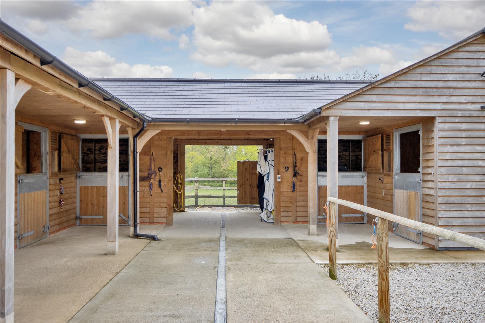 The pastureland extends to 17.57 acres and is split into multiple paddocks, all post and rail fenced.