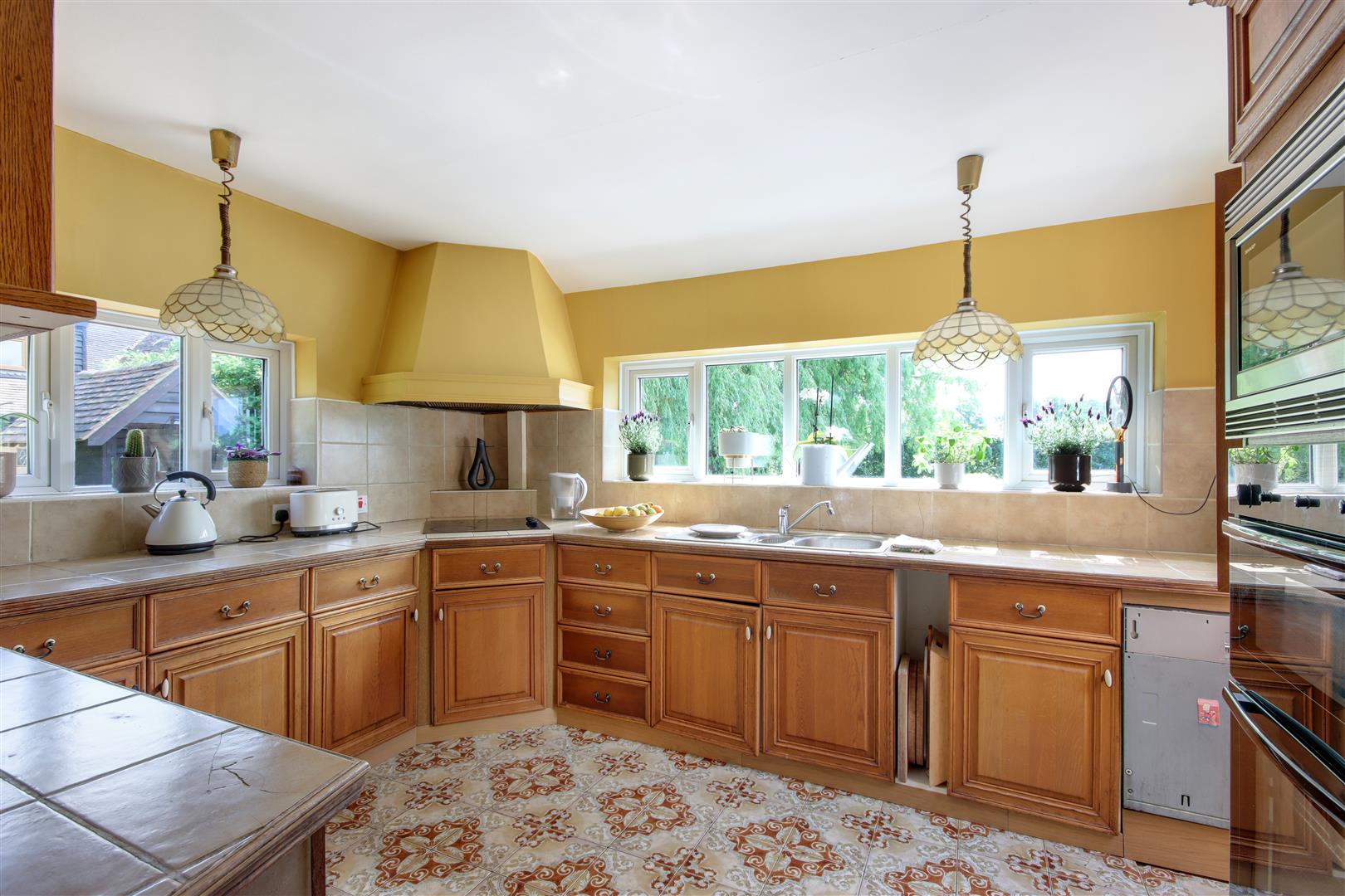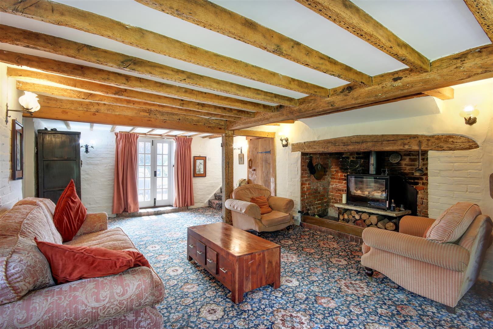 The 5 bedroom farmhouse is of solid brick construction under a pitched clay tile roof and tile hung to the upper elevations. Outside the grounds are laid to lawn with surrounding mature trees, apple orchard, shrubs and borders. There is also a swimming pool with surrounding patio area along with parking for several vehicles.