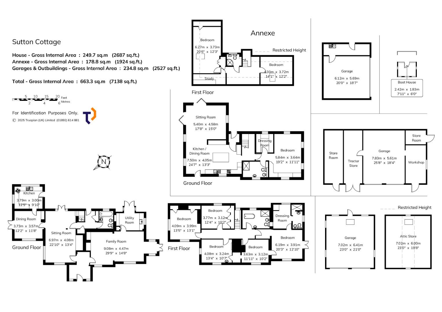 There are a range of ancillary outbuildings across the property which include Multiple Garages and Stores all developed by the Vendor and their family. The total footprint of the outbuildings is 2,527ft² and a detailed breakdown can be found within the Property Particulars.