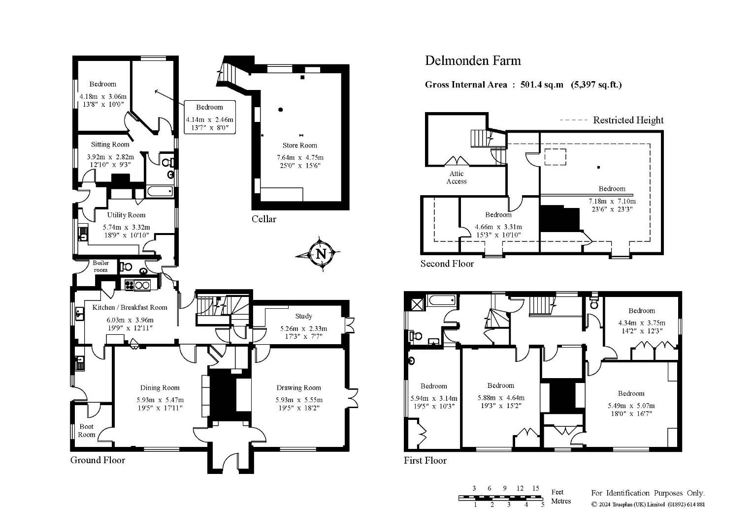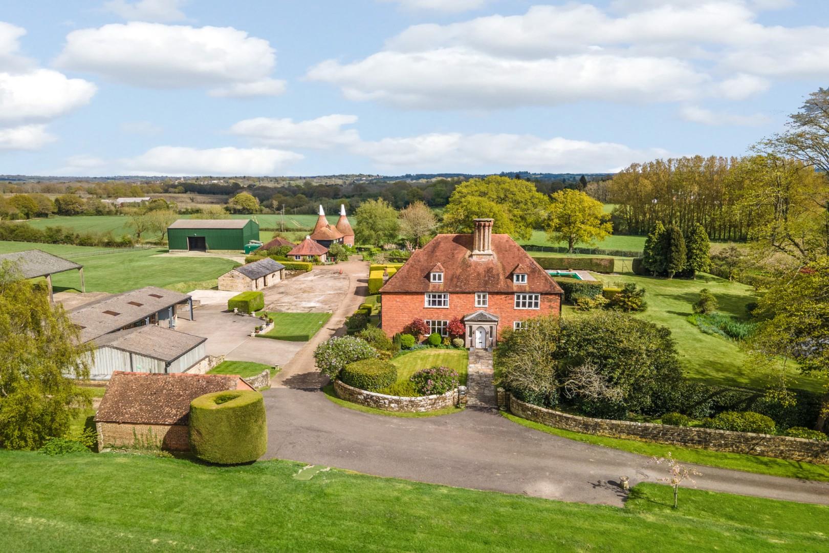 Delmonden Farm is in a desirable, peaceful and accessible location surrounded by its own land and buildings and has potential throughout. There are various component parts consisting of a Grade II Listed Farmhouse that has a history dating back to the 16th Century, with elements of its Tudor origins still visible today as well as a canvas of exposed beams, original decorative brickwork and open fires which welcomes the blend of historic and modern living. An Annexe to the rear of the Farmhouse which can be self-contained and looks out onto the walled garden. Landscaped lawns and gardens that have been kept to a high standard which gives the property a cared for and cherished feel. Delmonden also enjoys an array of leisure and sporting facilities, including a swimming pool (in need of modernisation and refurbishment), tennis court, stables and menage. There are a range of ancillary, agricultural and commercial outbuildings that have been maintained to a high standard opening the doors for an array of commercial opportunities or residential planning potential (STPP) in the future. The wider property is surrounded by pasture and woodland with views across the Weald of Kent and the entirety of the property extends to approximately 85.09 acres.