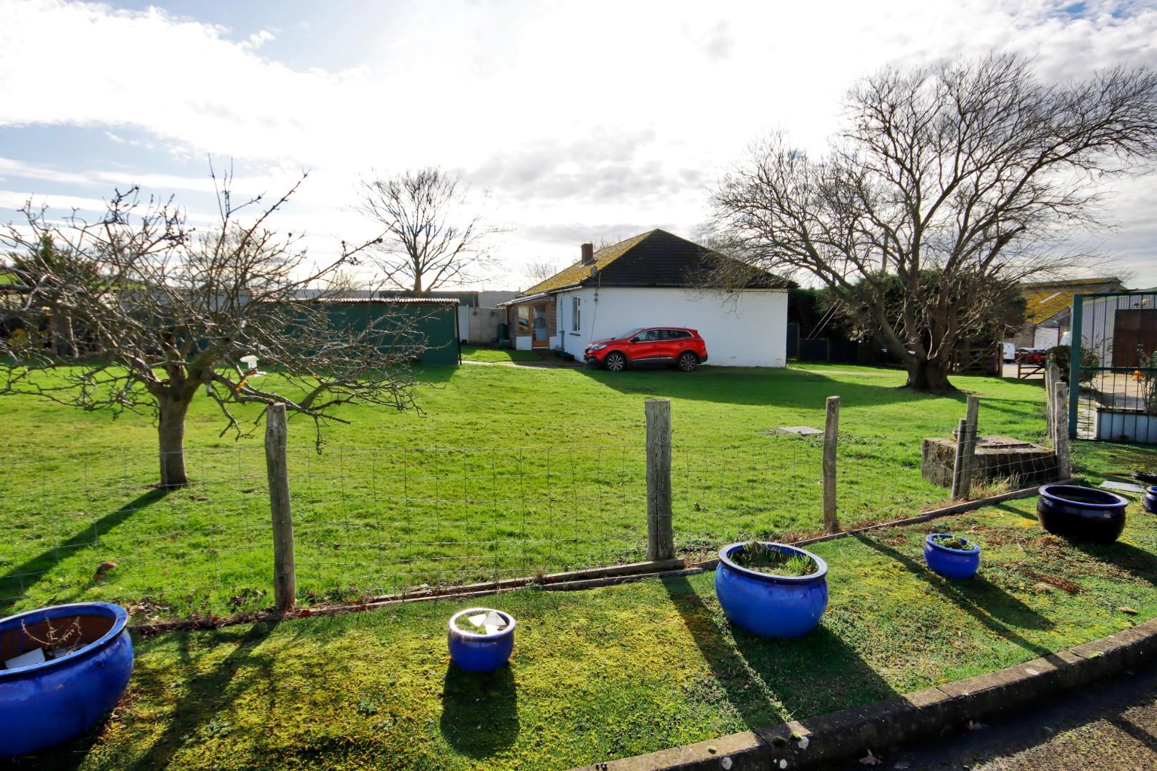 Outside the bungalows have wrap around lawned gardens with off road parking for multiple vehicles. no.1 has a garden storage building also.