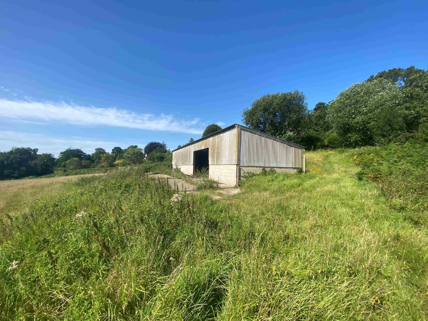 A parcel of south-east facing pasture with an agricultural barn.