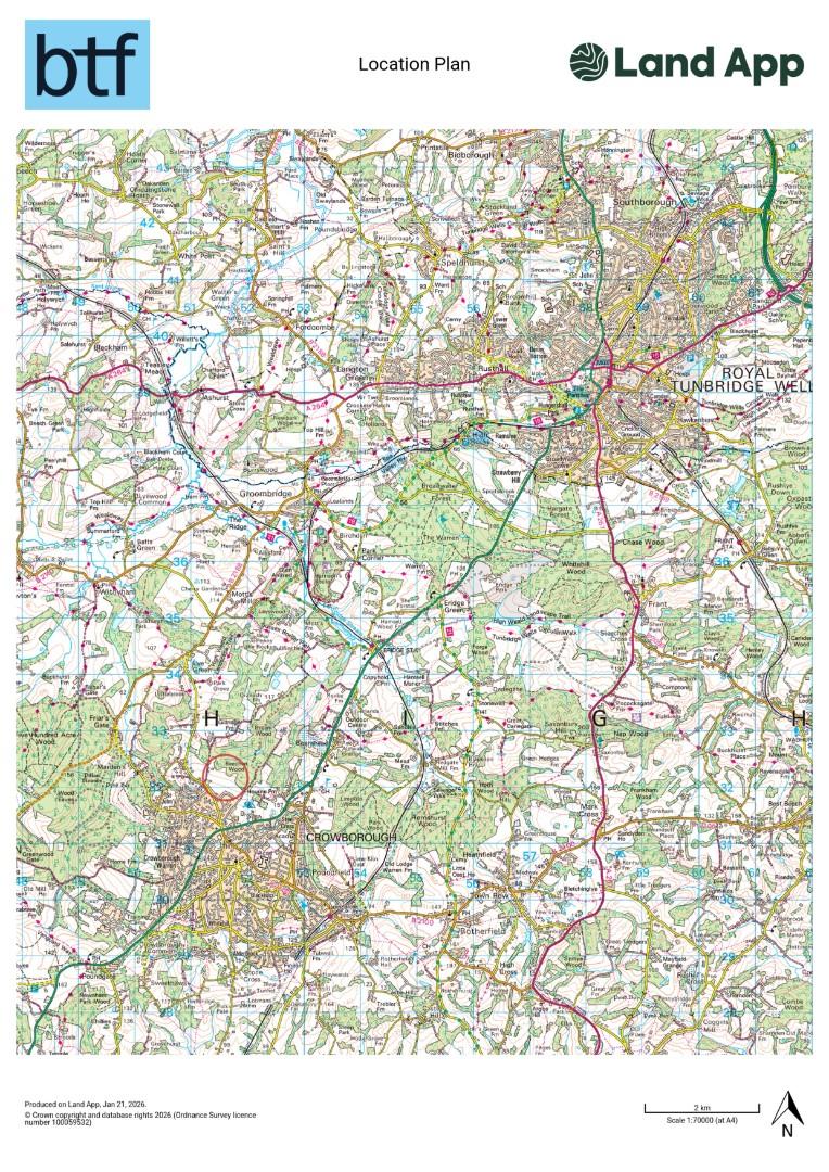 The land is situated approximately one mile north of the town of Crowborough, in an easily accessible location off Gillridge Lane. Access is provided over a right of way over a track leading from the Ashdown Business Park.