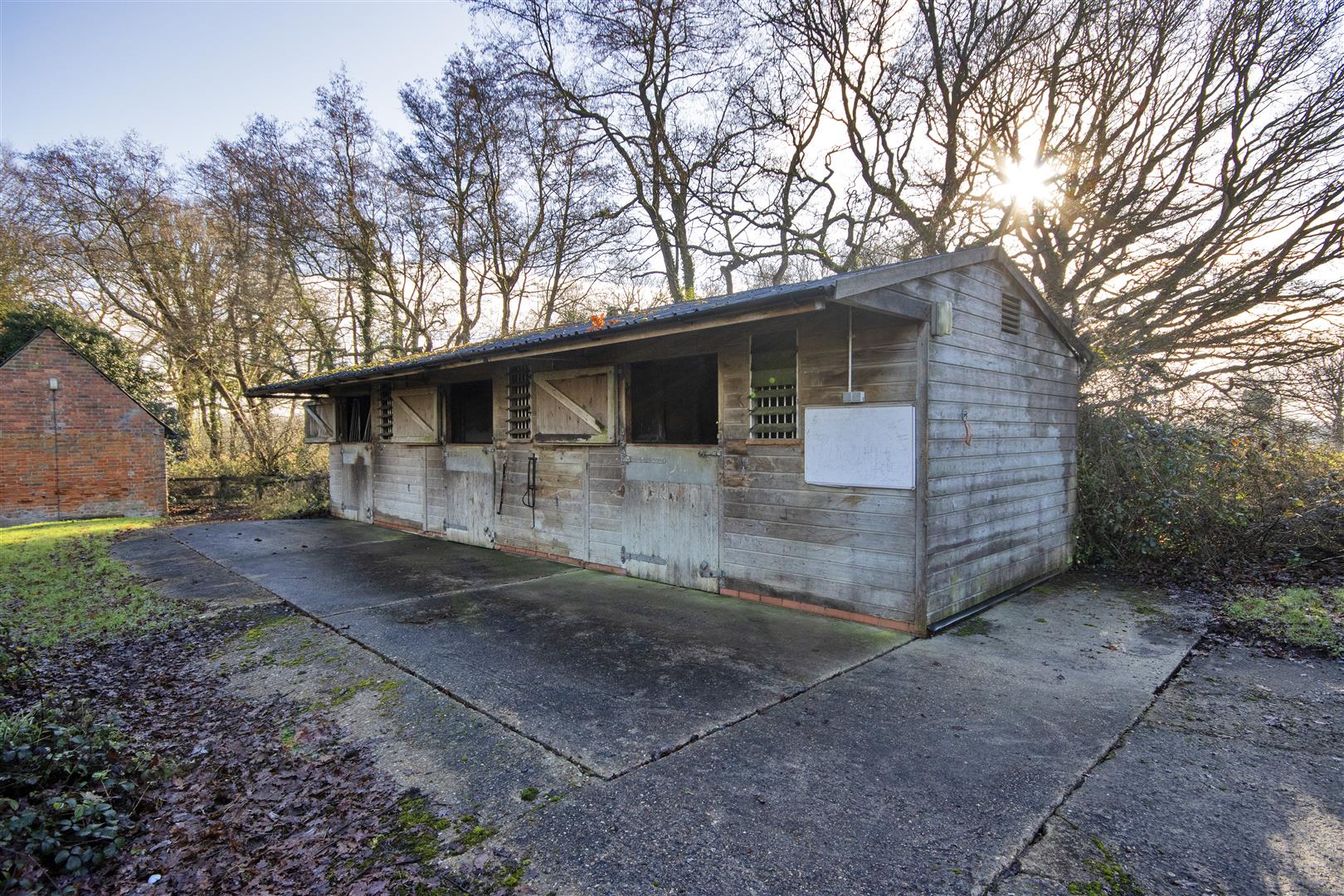 Outside, the house is situated within enclosed, mainly lawned gardens to the front and side whilst the 3 Stables to the rear open out onto part of the Farmyard opposite the Dutch Barn. To the side of the house is an open fronted Car Port. On the western side of the garden is part of a large natural Pond and an old Garage about 4m x 2m.