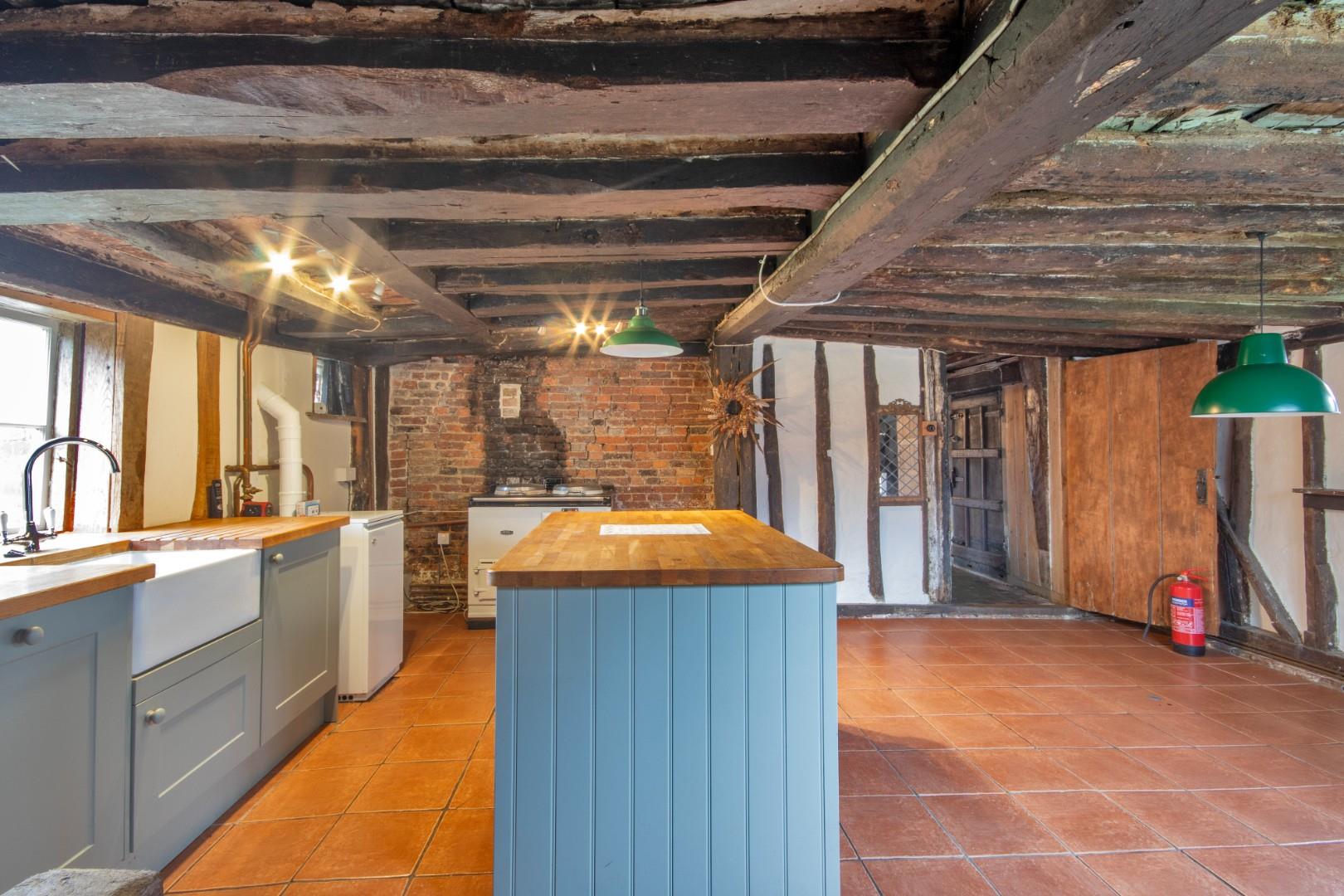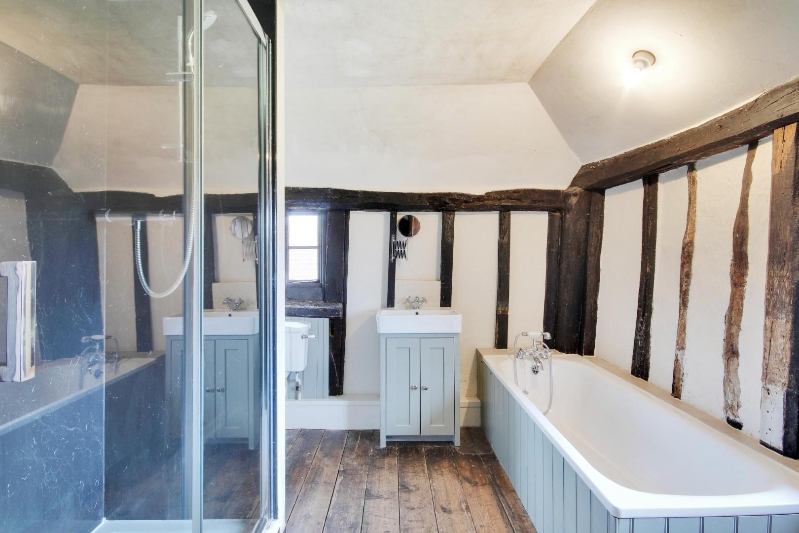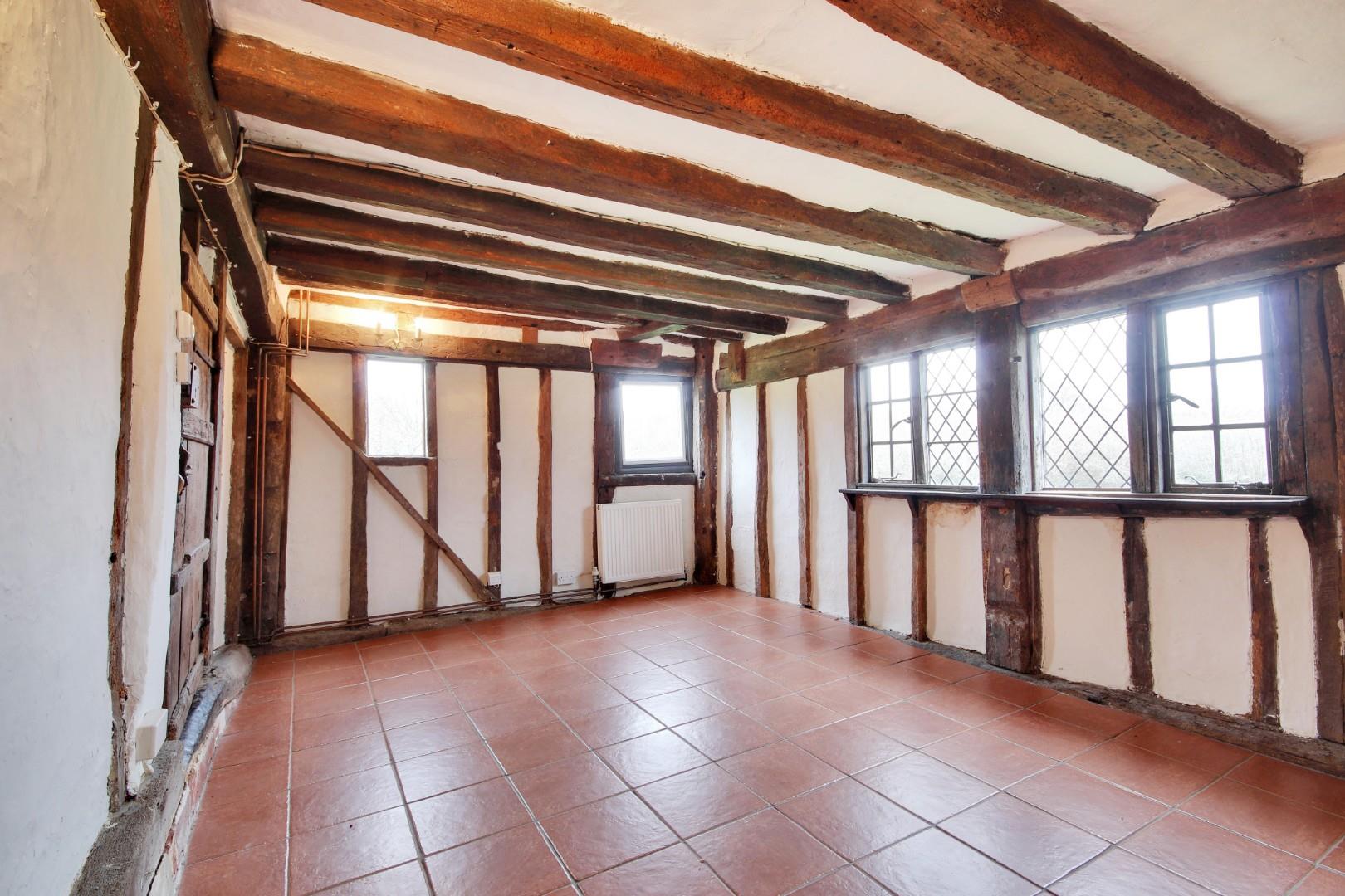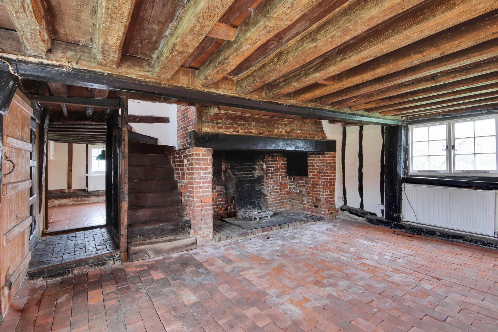 This is a 4-bedroom 16th century timber frame Grade II listed dwelling, with a partly jetted first floor. The house is externally clad in weatherboard and part rendered under pitched tiled roofs. The farmhouse has traditional features such as a period oak staircase and a bressummer beam fireplace.