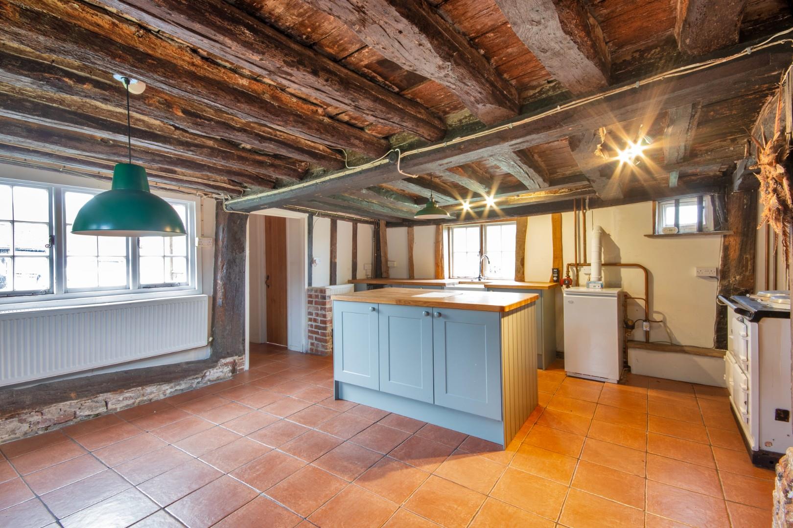 This is a 4-bedroom 16th century timber frame Grade II listed dwelling, with a partly jetted first floor. The house is externally clad in weatherboard and part rendered under pitched tiled roofs. The farmhouse has traditional features such as a period oak staircase and a bressummer beam fireplace.