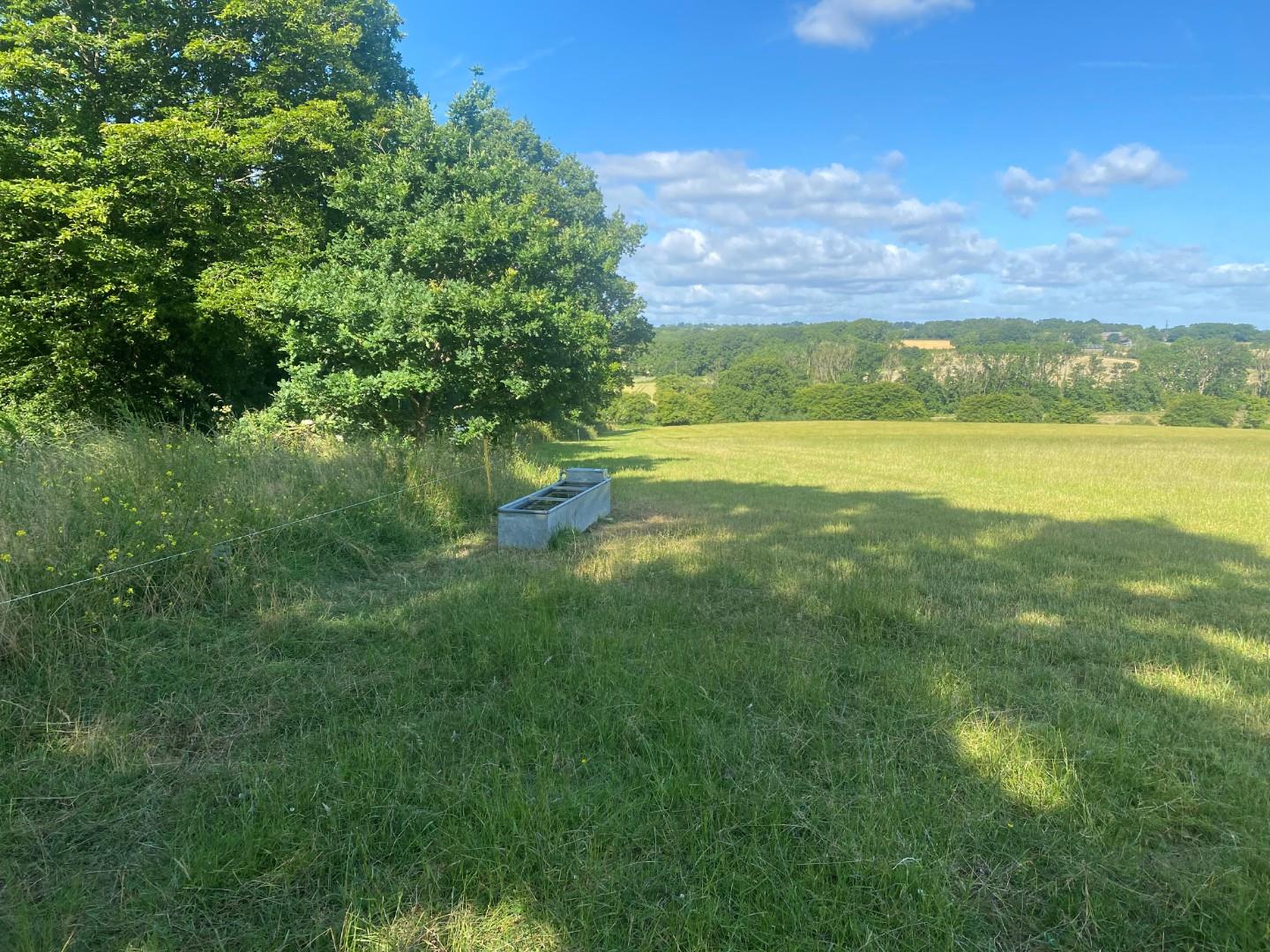 A ring-fenced parcel of agricultural land, divided into two hedge-enclosed pasture fields by a woodland shaw.