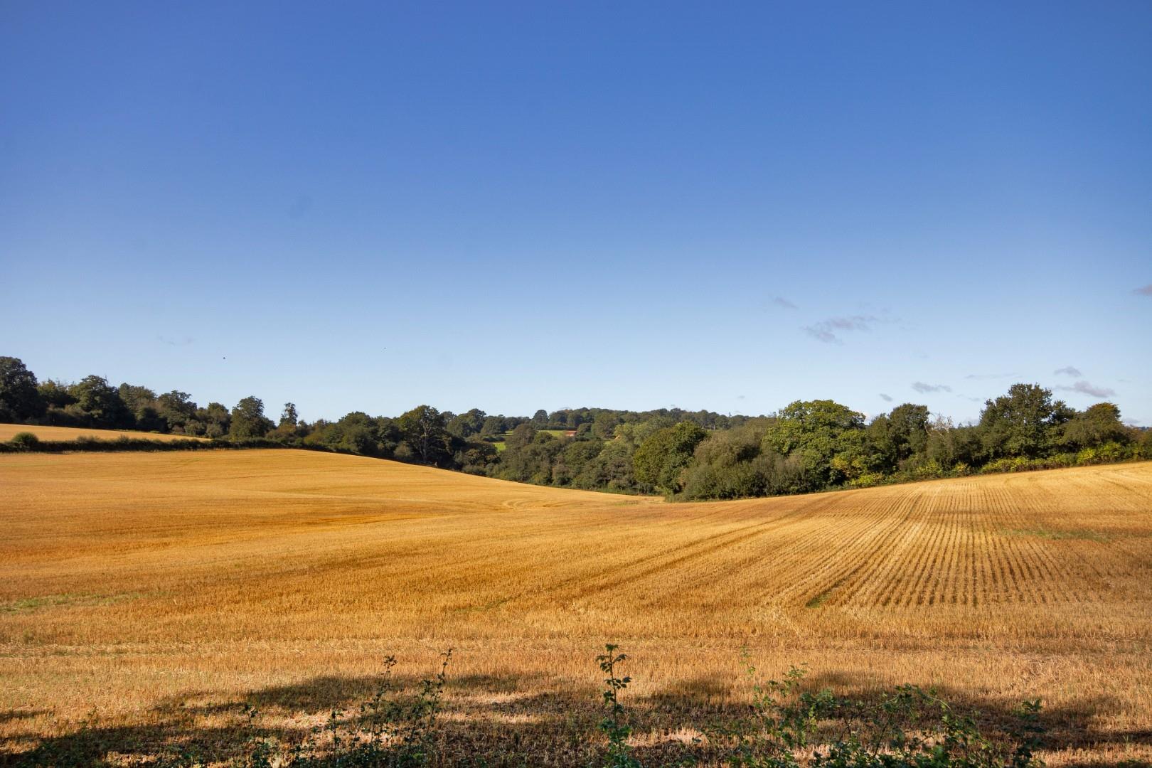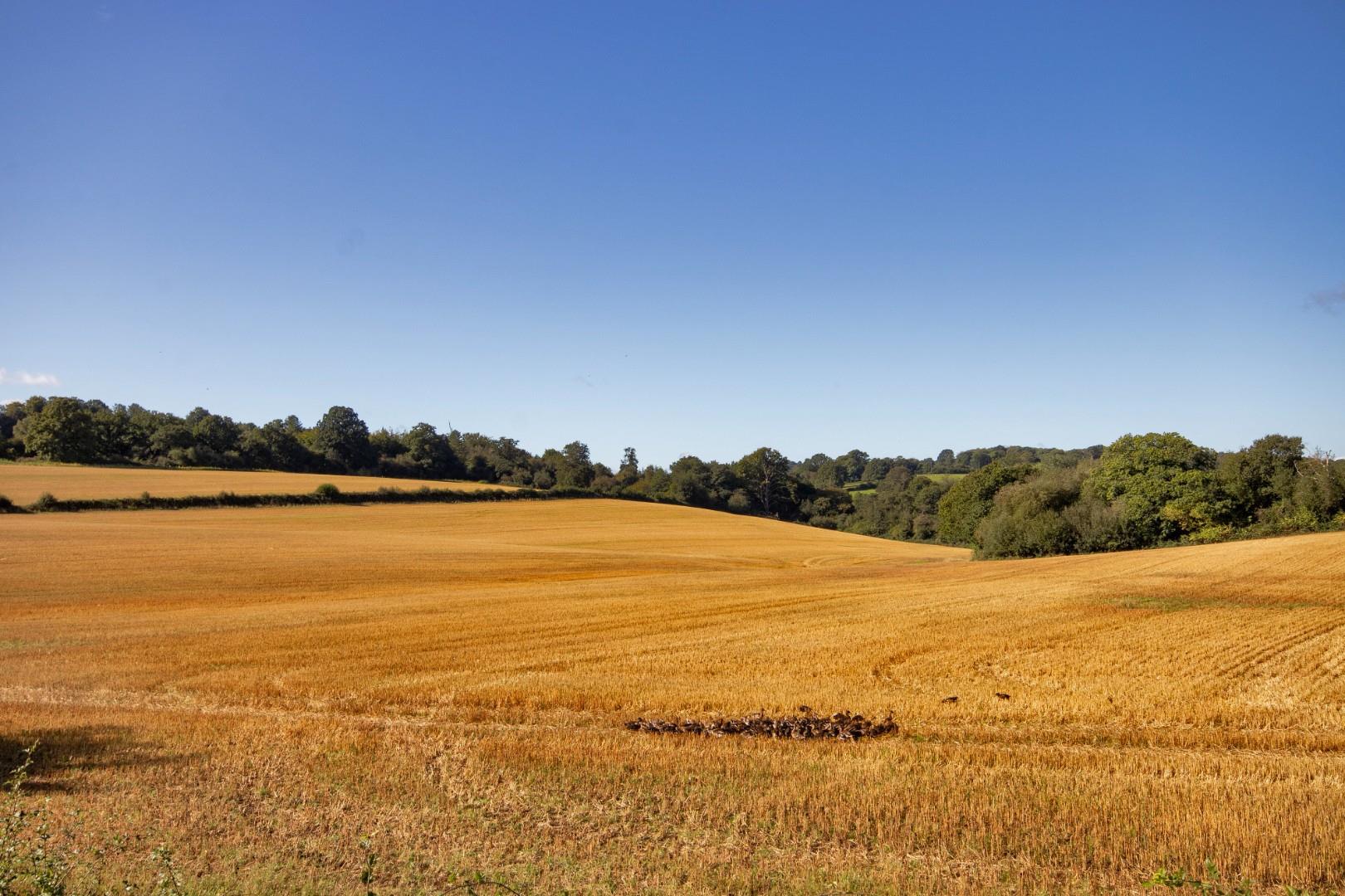 Wickhurst Farm west is all the land to the west of Bartley Mill Road and extends to 87.35 acres. The land is predominantly arable 81.78 acres along with a small area of woodland 5.57 acres. Certain areas are used by the local shoot for cover crops but the land is gently undulating down to the north.