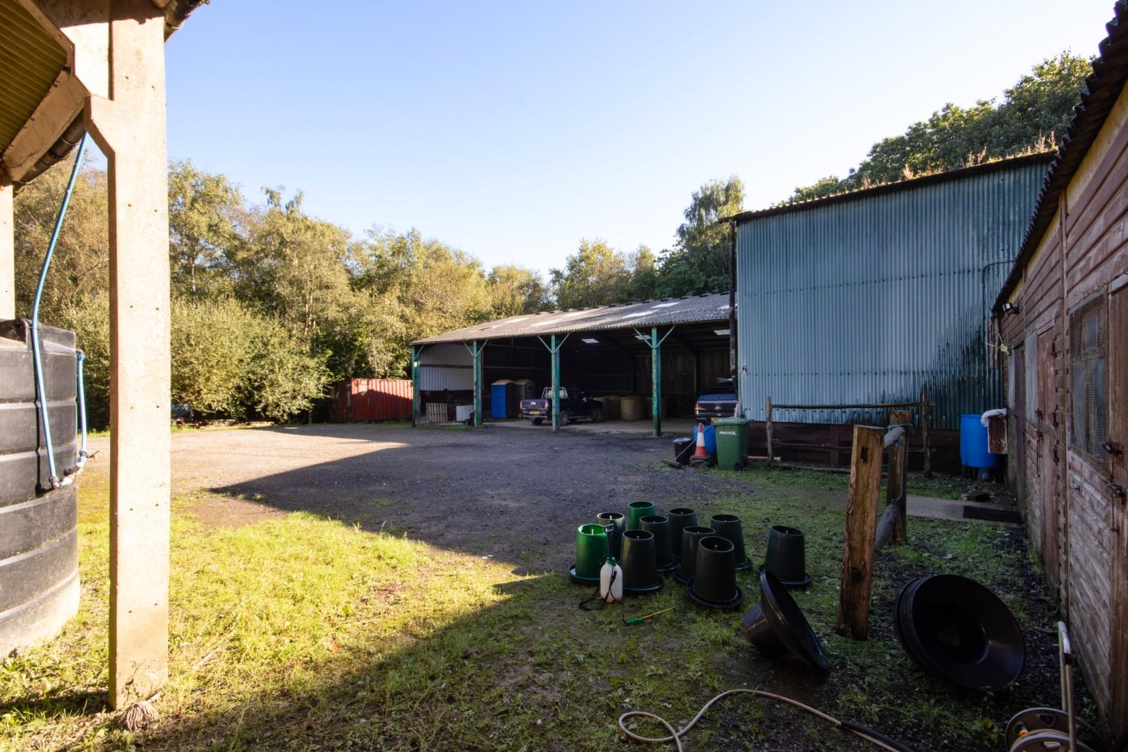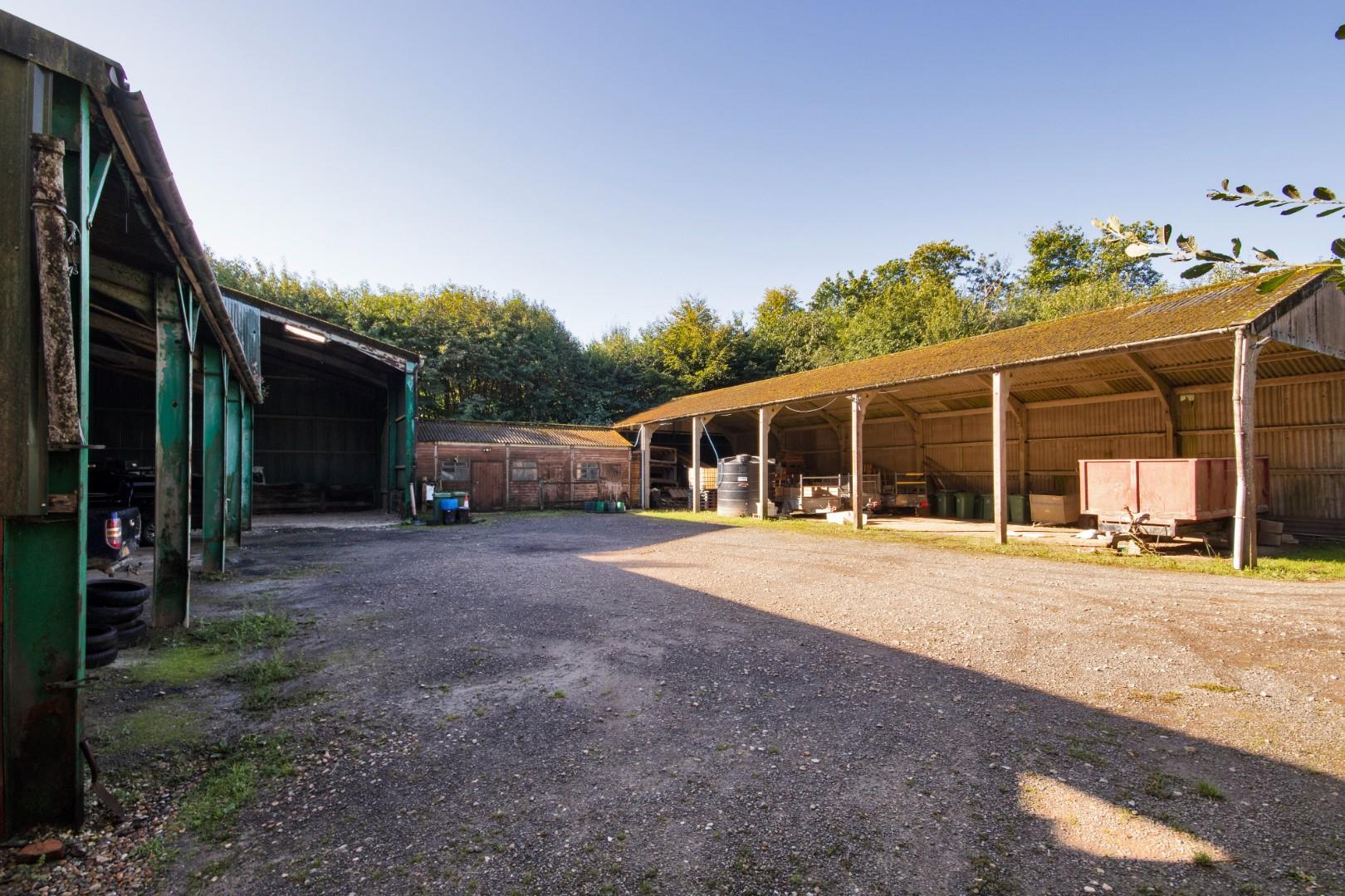 The range of buildings comprise steel & concrete portal frame structures under pitched corrugated fibre cement roofs with hard core and concrete yard areas. The buildings have the benefit of mains electricity and water. There will be an overage provision in place in favour of the vendor for 25% of any uplift in value for any residential consent over ten years after completion of the sale. The exact area included within the overage is available from the selling agents on request.