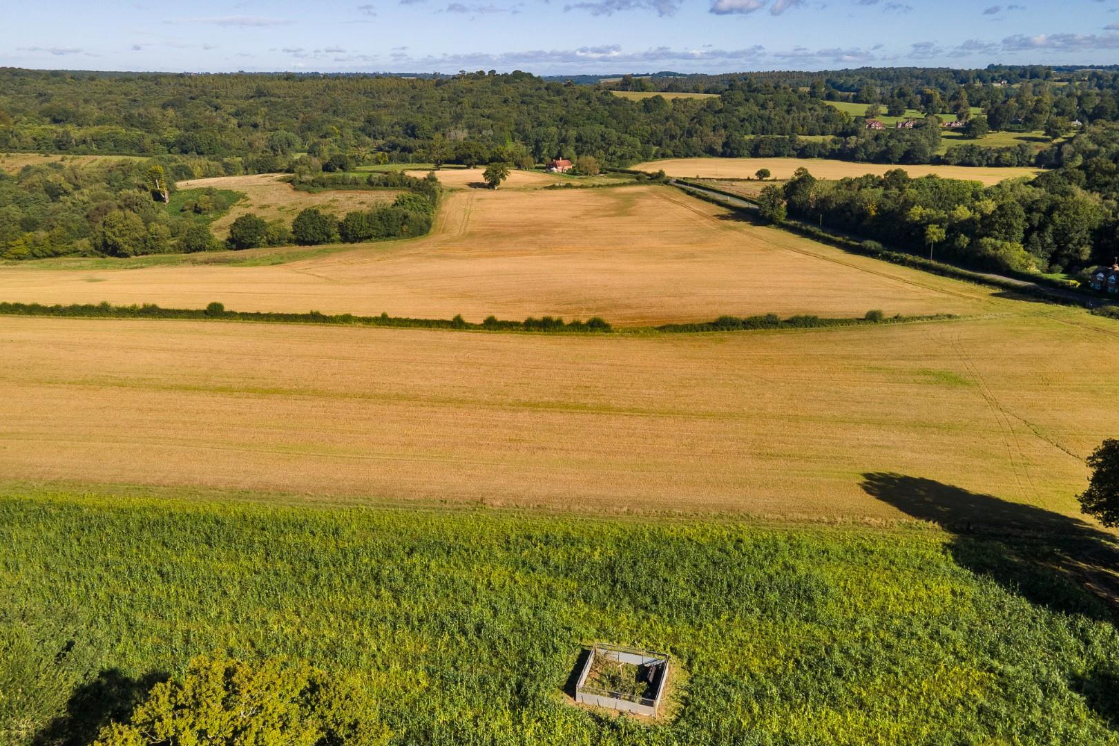 Wickhurst Farm South comprises two arable parcels divided by a central belt of woodland along with a range of agricultural buildings. This lot extends to 49.38 acres with 33.81 acres in an arable cropping rotation, 15.25 acres of woodland and 0.32 acres for the yard and buildings.
